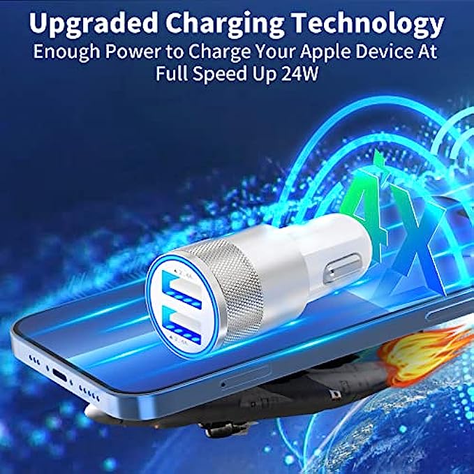 • 【Dual USB Port Smart Car Charger】: Equipped with Dual USB power output, Braveridge's fast car charger can charging two iPhone devices simultaneously. The built-in intelligent IC chip automatically detects and provides the best power for your iPhone devices. Provide a maximum of 2.4A/12W if a single port is used and 4.8A/24W when dual ports are used simultaneously. Can charge your iPhone device 4 times faster, Charging efficiency is improved by 50%.