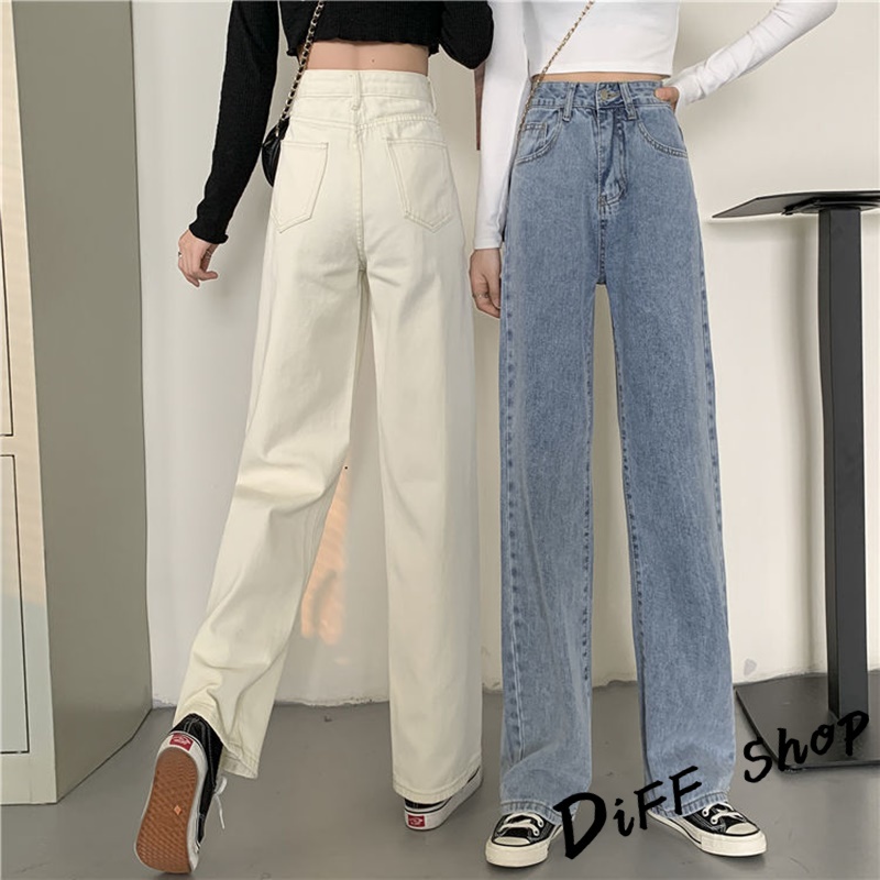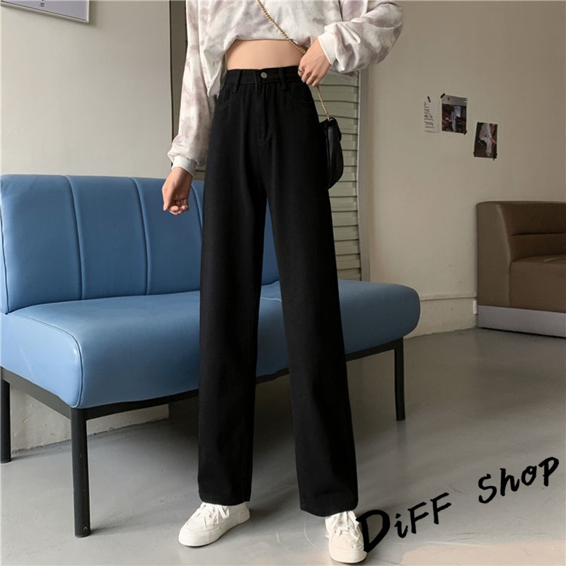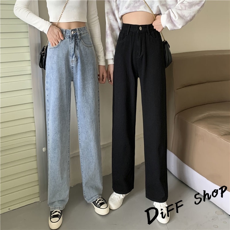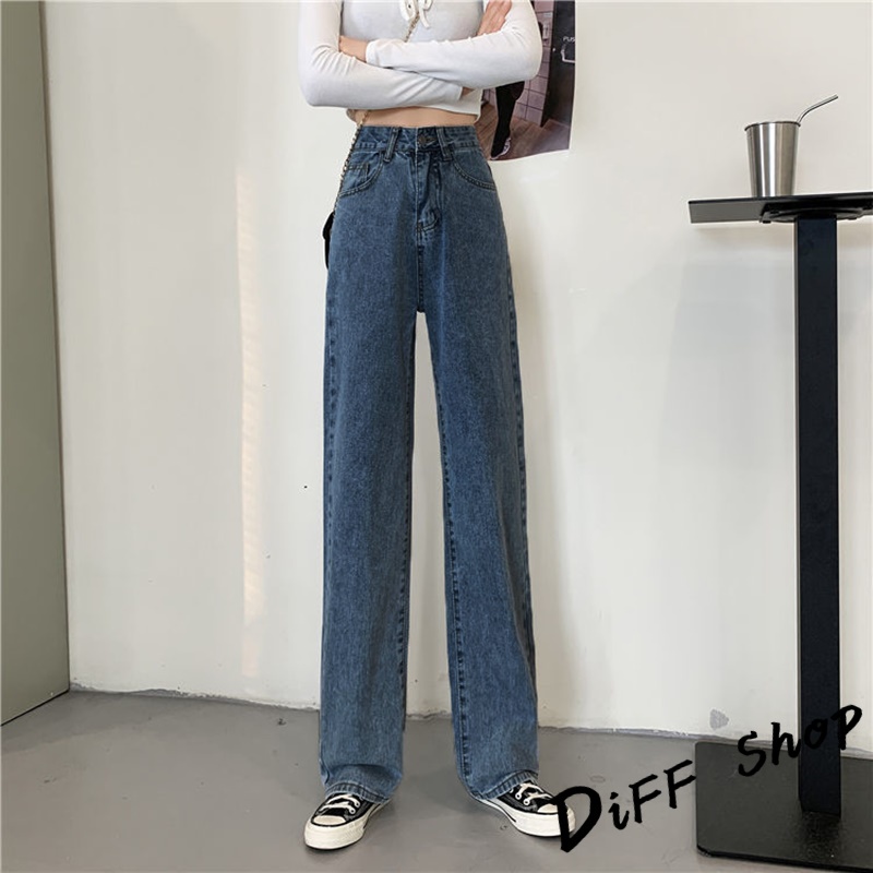 【DIFF】韓版寬鬆顯瘦高腰牛仔褲 寬褲 褲子 長褲 休閒褲 女裝【P102】