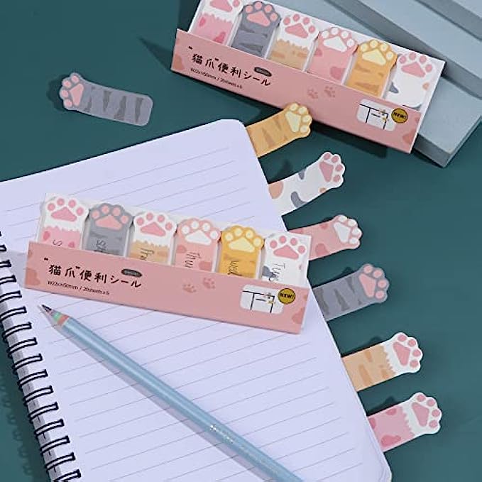 240Pcs Cartoon Animal Notes Cat Paw Memo Self-Adhesive Tabs Notes Page Markers Flags Index for Cat Lovers, Cute Office Supplies, Kawaii School Supplies