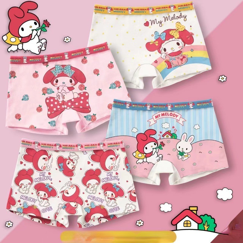 4PCS Cartoon Sanrio Printed Children's Flat Angle Panties Anime Cinnamoroll My Melody Kuromi Kawaii Comfortable Cotton Underwear