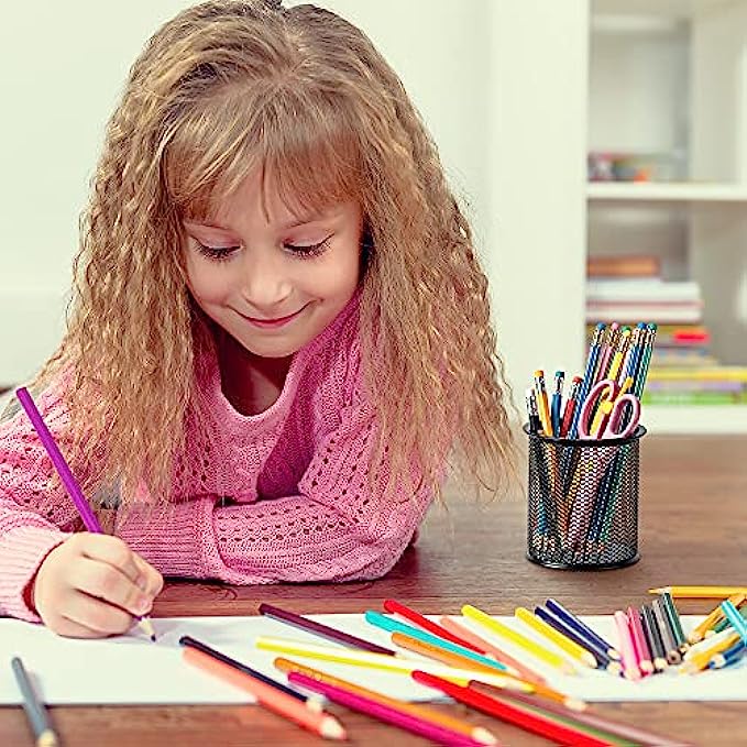Pencil cup ideal for hold writing utensils and office supplies such as pens, scissor, rulers, brushes, and more