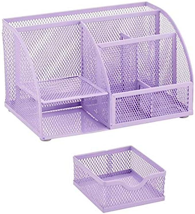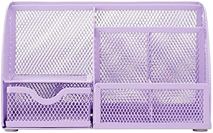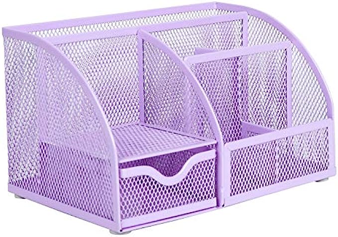 Annova Mesh Desk Organizer Office with 7 Compartments + Drawer/Desk Tidy Candy/Pen Holder/Multifunctional Organizer - Light Purple / Lavender