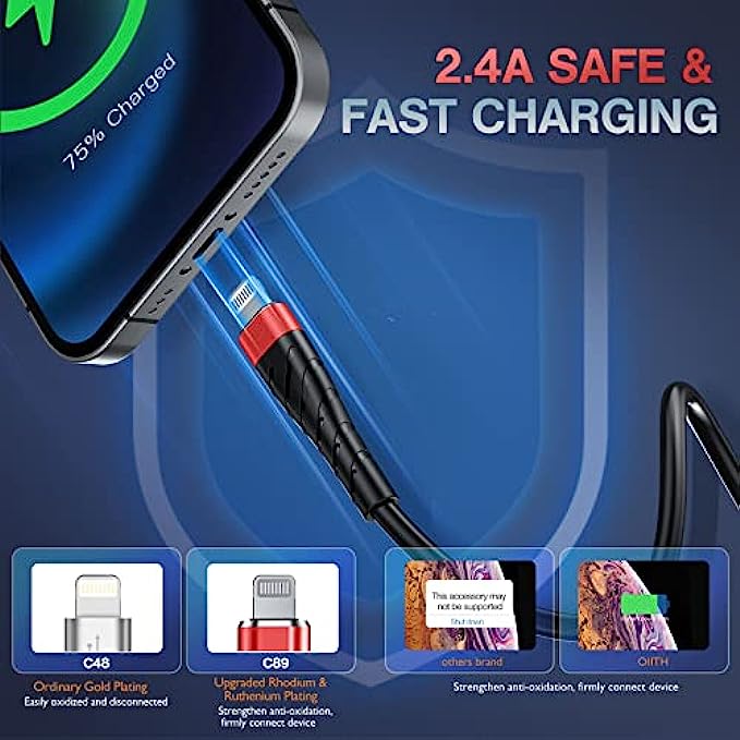 • [ Apple MFi-certified Lightning Cable ] - 3 Pack 6Ft OIITH apple cable adopts Apple's officially certified chip to ensure faster and safer charging. No rupture, low loss.