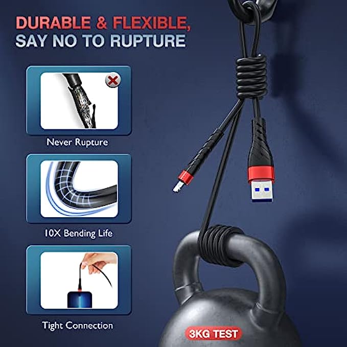 • [ TPE Coated Outer layer Craft ] - TPE material is environment-friendly, safe, non-toxic and soft to touch. It also has good weather-resistance and temperature resistance. It's more flexible than nylon braided cable. And it has high resilience, so it won't knot easily.