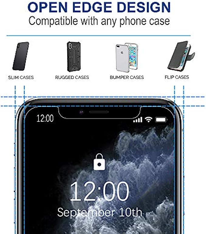 [Compatible for] iPhone 11 Pro / iPhone Xs / iPhone X, 5.8 inch. Arae Screen Protector made of latest premium quality 9H Hardness 3D Round Edge Ultra-thin HD tempered glass, maintains the original response sensitivity and touch-screen accurate. [Anti-Scratch / Oil / Fingerprint] Arae durable screen protector consistently protects your screen from scratch, shock, and impacts. Hydrophobic oleophobic screen coating protects against sweat and oil residue from fingerprints. [Easy To Install] Includes Guidance frame to provide accurate installation. Dust-free, fingerprint-free, bubble free, one-push super easily installation. [Case-friendly Design] The screen protector leaves enough space for the case to protect your phone, the screen protector will not be squeezed out of the screen by the case. EXCEPT cases with hefty raised edges such as battery cases. [Package Includes] There are 3 screen protectors and 3 accessory bags in the package and 1*installation frame, each accessory bag includes 2*Guide Sticker, 1*Wet Wipe, 1*Dry Wipe, 1*cleaning cloth.