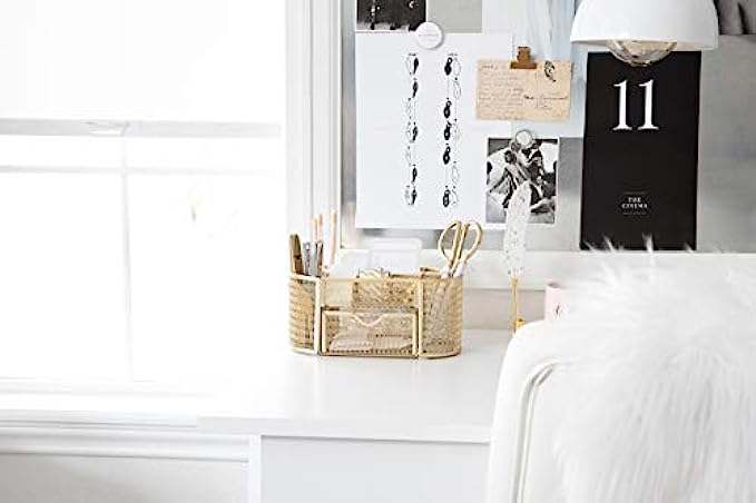 • LOTS OF STORAGE: This gold office organizer has eight compartments and one pull out drawer for all your office supplies. When it comes to gold desk accessories for women office, this organizer has you covered.