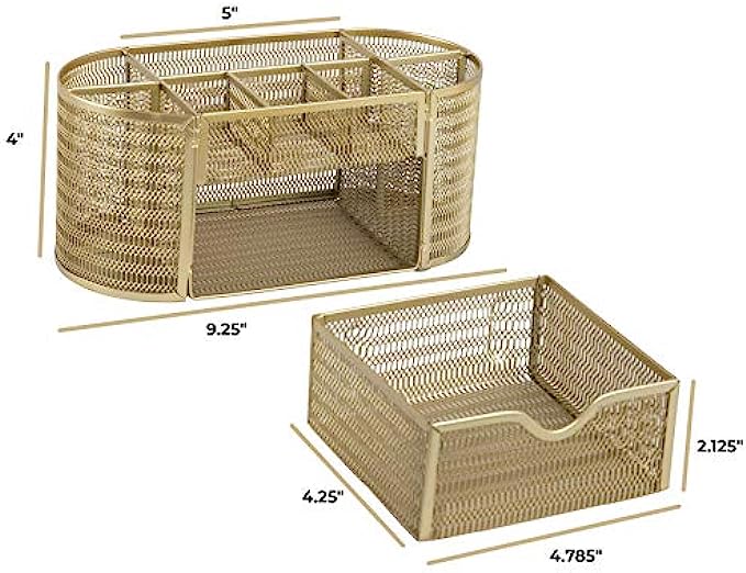 • STYLISH AND STRONG: Our gold desk supplies organizer is made of metal with a beautiful gold finish. It makes a great addition to any gold office supplies for desk use at home or in an office environment.