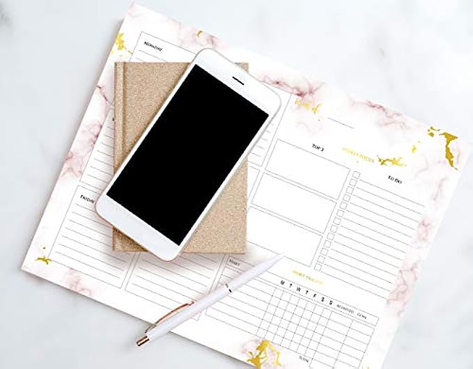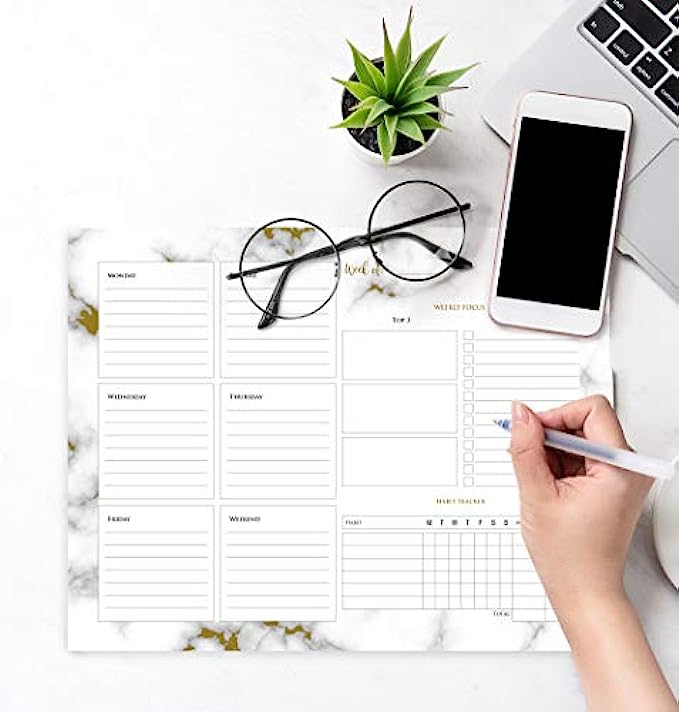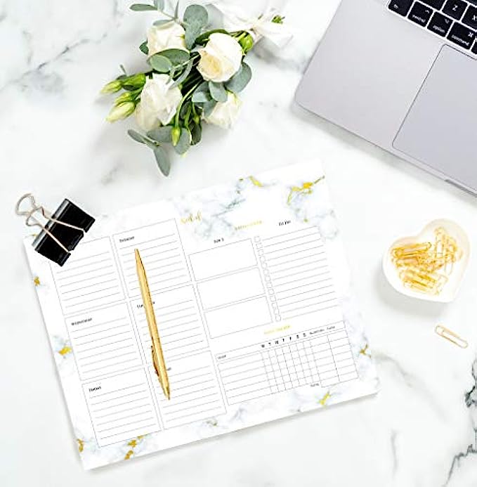 Beautiful Marble Weekly Planner Pad and Habit Tracker - Office Desk Supply to Do List for Women