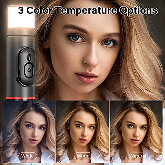 • ?【Rechargeable And Rotatable LED Fill Light】This 2022 new-upgraded selfie stick tripod is equipped with a 360°Rotation LED Fill Light. 3 color temperature modes(white, natural, and warm) and each mode has 3 brightness levels, offering 9 options to help you take clear pictures in subdued lighting, then stand out. Perfect for selfies, vlogs, live streaming, group photos, etc.