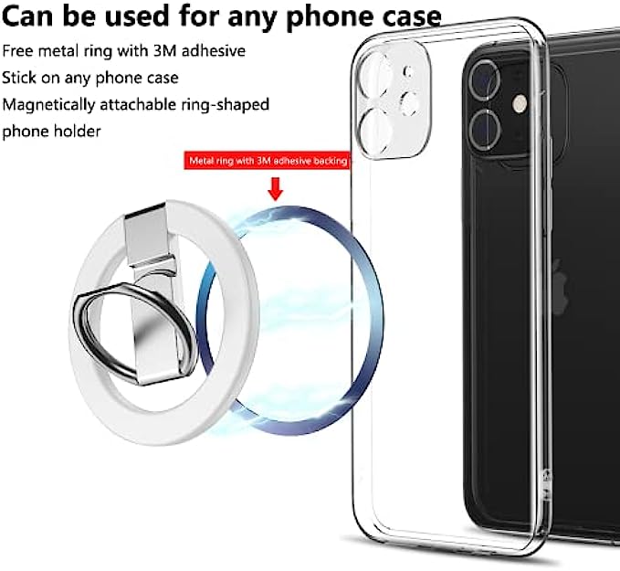 • 【Suitable for other phones and phone cases】Includes a metal ring with adhesive back and magnetic phone kickstand, you can stick the metal ring to your phone or phone case, then you can use the magnetic ring holder.