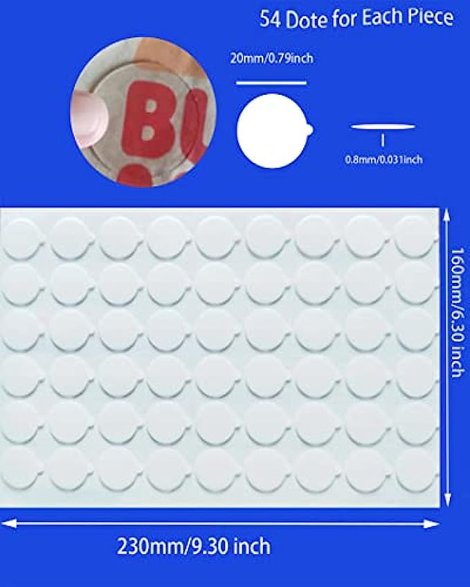 • Applicable Scene --- The circle adhesive double sided can be pasted on glass, metal, tile, ceramic, paper, wood, steel, plastic, clothes, etc., and easy to replace, Clear Sticky Putty can partially replace nails, pushpins, staples function of the device, when using, please keep the sticking surface clean and dry