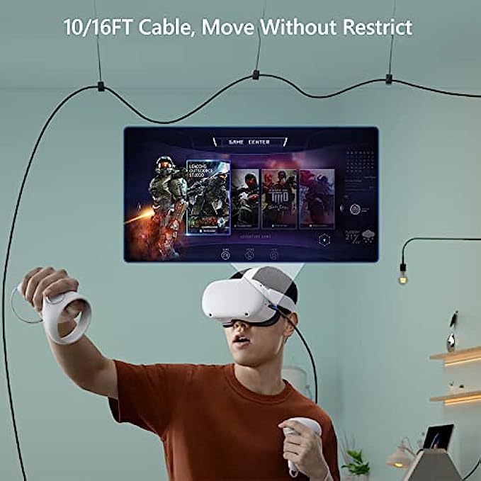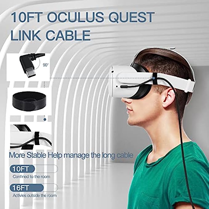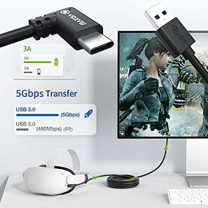 Link Cable for Oculus Quest 2, 16ft Link Cable for Pc Gaming and Steam, High Speed Data Transfer Cable and Fast Charging Cable, USB 3.2 A to C Charger Cord for VR Quest 2/1