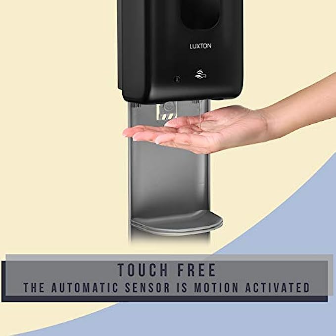 Luxton Automatic Hand Sanitizer Dispenser - Sanitizing Station, Steel Floor Stand, Drip Catcher Dish - Touchless Auto Sensor, Refillable 1200ml Bottle - Portable, Easy Set Up, Battery-Operated Machine