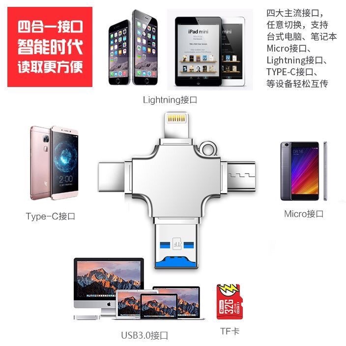 Multifunctional Four-In-One Card Reader 256g Suitable For Apple Android Mobile Phone Computer High-Speed 3.0 Ipad2 Flash Drive