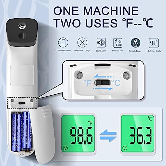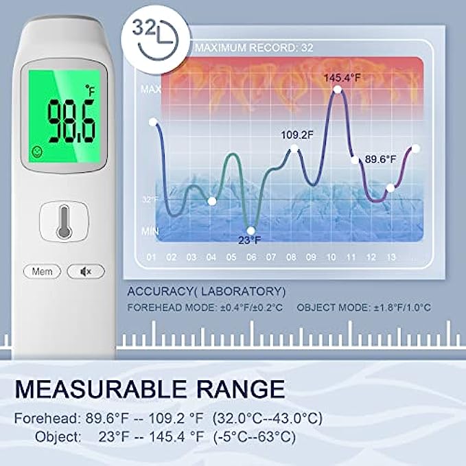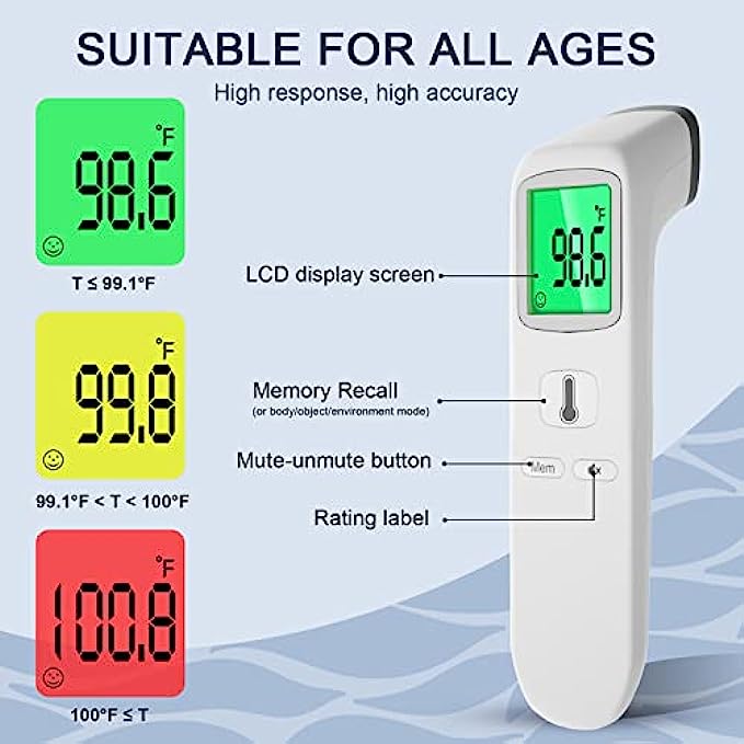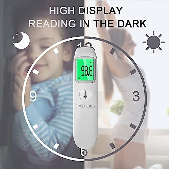• Multi-Mode Thermometer for All Age: The thermometer for fever reads temperatures in ear and forehead for all ages, the temperature thermometer for adults, kids and infants. And it can also measure the object(water) temperature and room temperature. An ideal choice for public, hospitals, restaurants, schools, companies, homes, etc. (℃ and ℉ are easily switchable.)