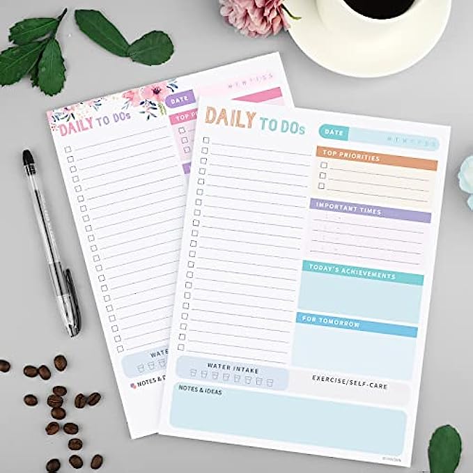 • Undated Daily Planner - 52 high quality tear off sheets, it will help you organize your day. Each sheet measures 7.3 x 10 inches.