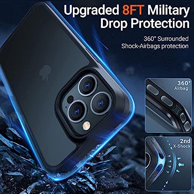 MILITARY GRADE DROP PROTECTION: Compatible for iPhone 13 Pro Max Case ensures your phone is safe when it drops 5000+ times from 8 FT height. It is for stronger protection that the good quality case designed with 360° all-around patented dispersion airbags and upgraded X-SHOCK impact-resistant technology. What's more, the shockproof 13 Pro Max case is certified protection from authoritative SGS and ROHS