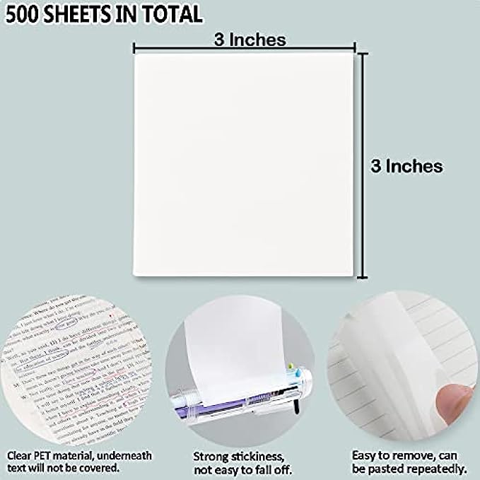 • Waterproof Material: Superior PET material, waterproof and durable, prevents ink soak through the clear sticky notes and easy to write on. 10 packs of 500 sheets in total, enough quantity for your various note needs.