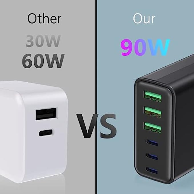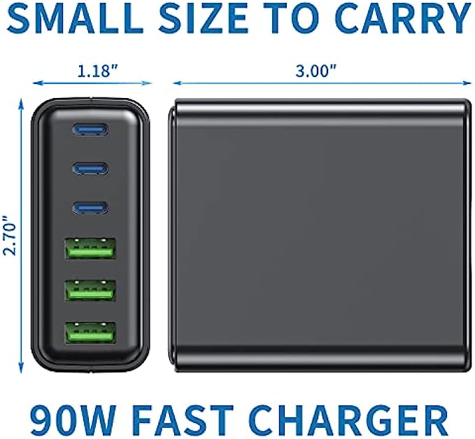 • 【Fast-Speed Charging】 It with total Design Power 100 watt. total output power 90W. 3x20W USB-C Power Delivery port for iPhone 13/12/12 Pro/12 Pro Max, iPhone 11/11Pro/XS/XR/X, iPad Pro, iPad Air, Galaxy S10 / S9 and other Samsung phones and tablets, more up to 3× faster than with an original old charger. 3 X10W USB A fast charger port for your other devices