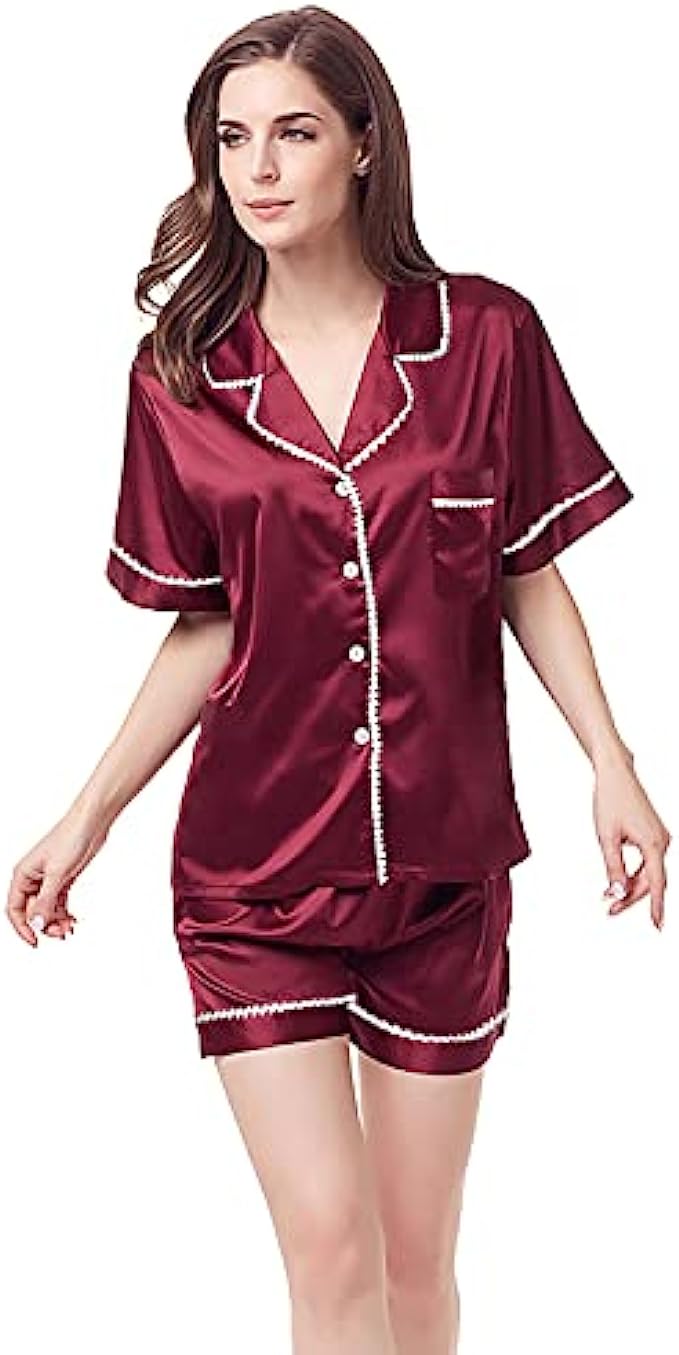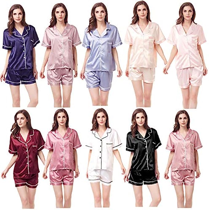 • Applicable Occasions: Women's short-sleeved silk satin pajama set, suitable for daily wear and easy to match. Light weight and easy to carry. Comfortable, suitable for rest and sleep, slumber party, girls' day, bridal pajamas, indoor, living room, bedroom, hotel, workplace, travel, daily pajamas.