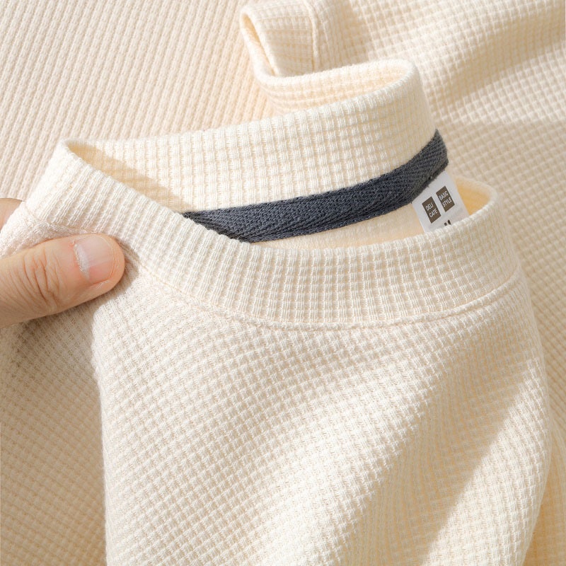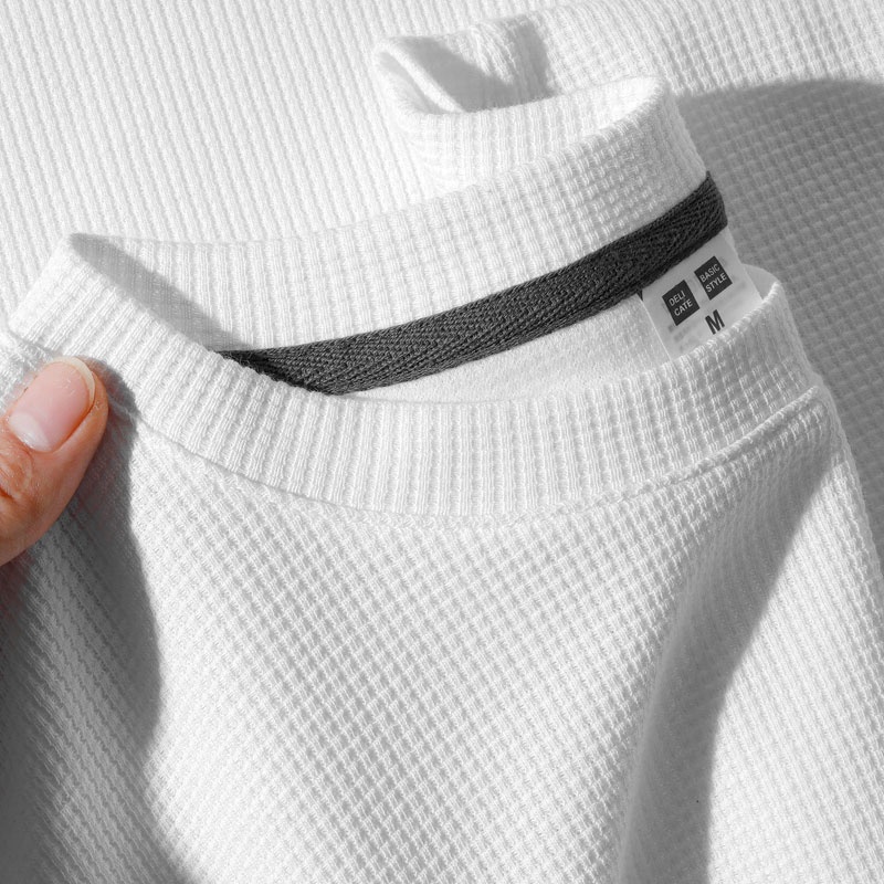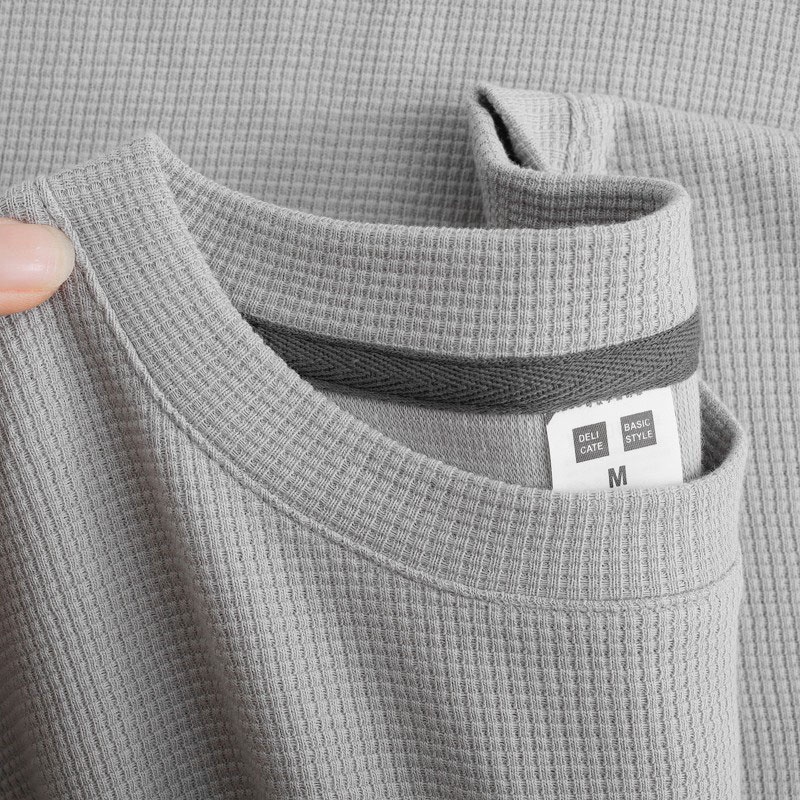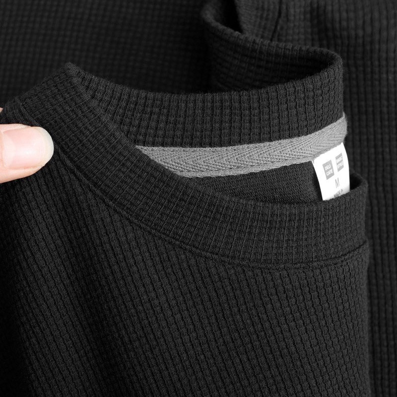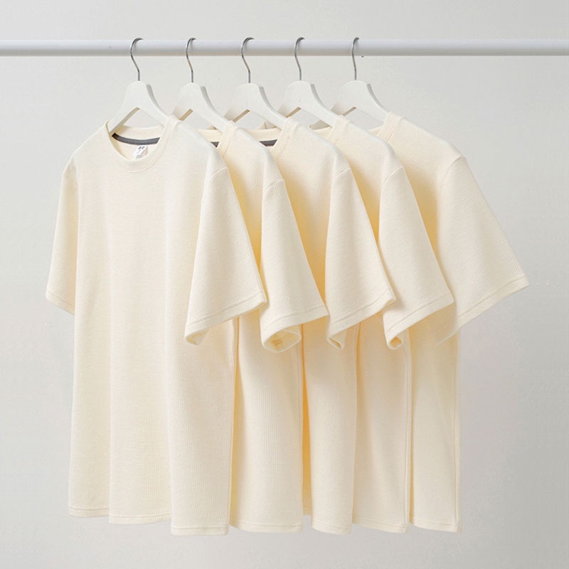 Material Quality:comfortable Colour:more to biege color The size I choose is L for a height of 1.7m weight 61kg. The size is just right for me. Not too loose nor tight. Very good. Though outside we see is a waffle Tees, but reverse side is silky and smooth one. I think is good to wear to the country around 26-28degree.