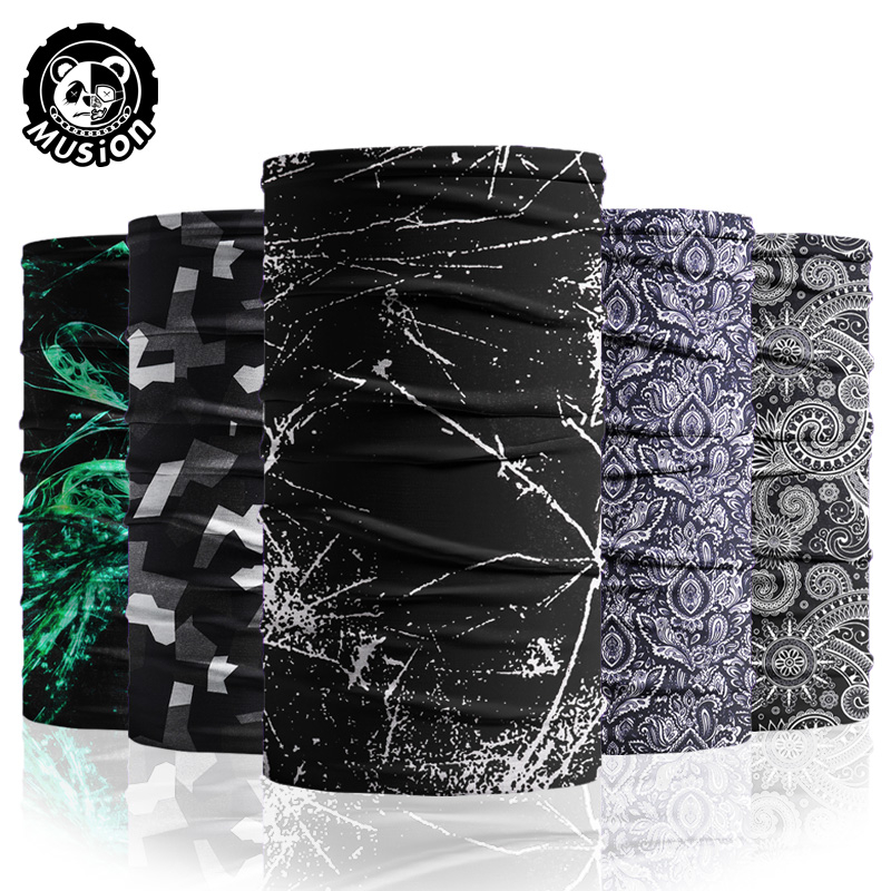 Classic Black Head Scarf SPF 30 Rider Neck Mask Elastic Buff Bandana Sun Protection Motorcycle Balaclava Face Mask Grey Pattern Sports Face Cover for Riding Bicycle and Motorcycle 防晒 头巾