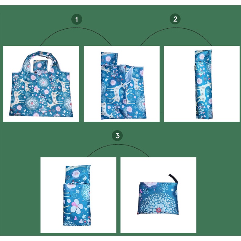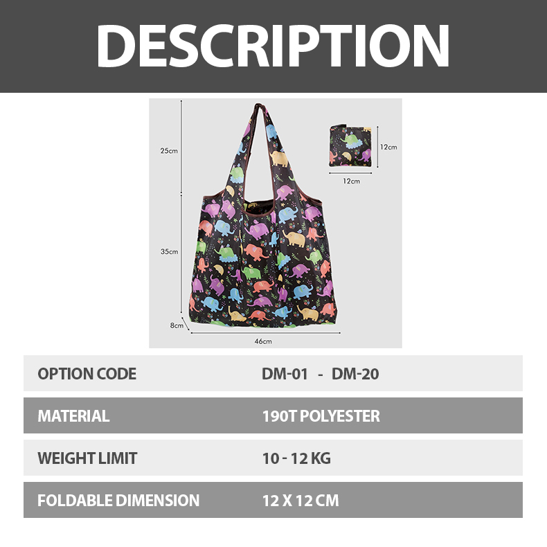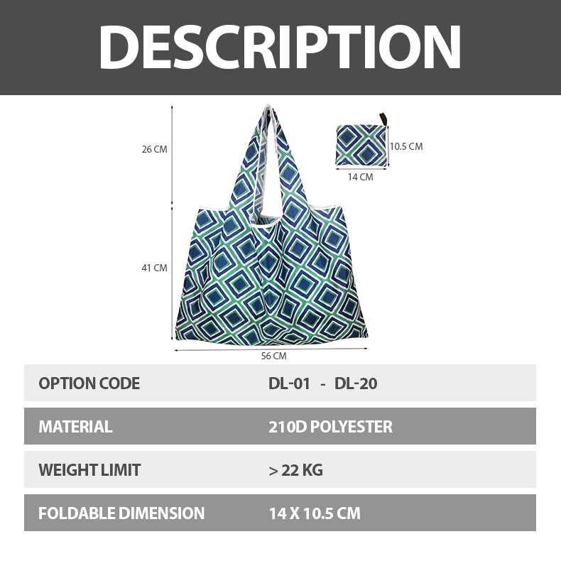 Colour:Marine Blue, salmon pink, pale orange. Material Quality:Polyester bag ? The foldable polyester bag has a "small pouch" at centre top =➡️ that allows the entire bag to be folded & slotted into this pouch. ( ? see video for steps on folding) ?Product code = DM-07 / Medium Size ?Bottom = 46 cm ? Length = 60cm ? It's just a well-balanced size for carrying groceries & snacks etc when you are shopping at a supermarket.✅️ It's neither too big nor too small. ☑️刚刚好。