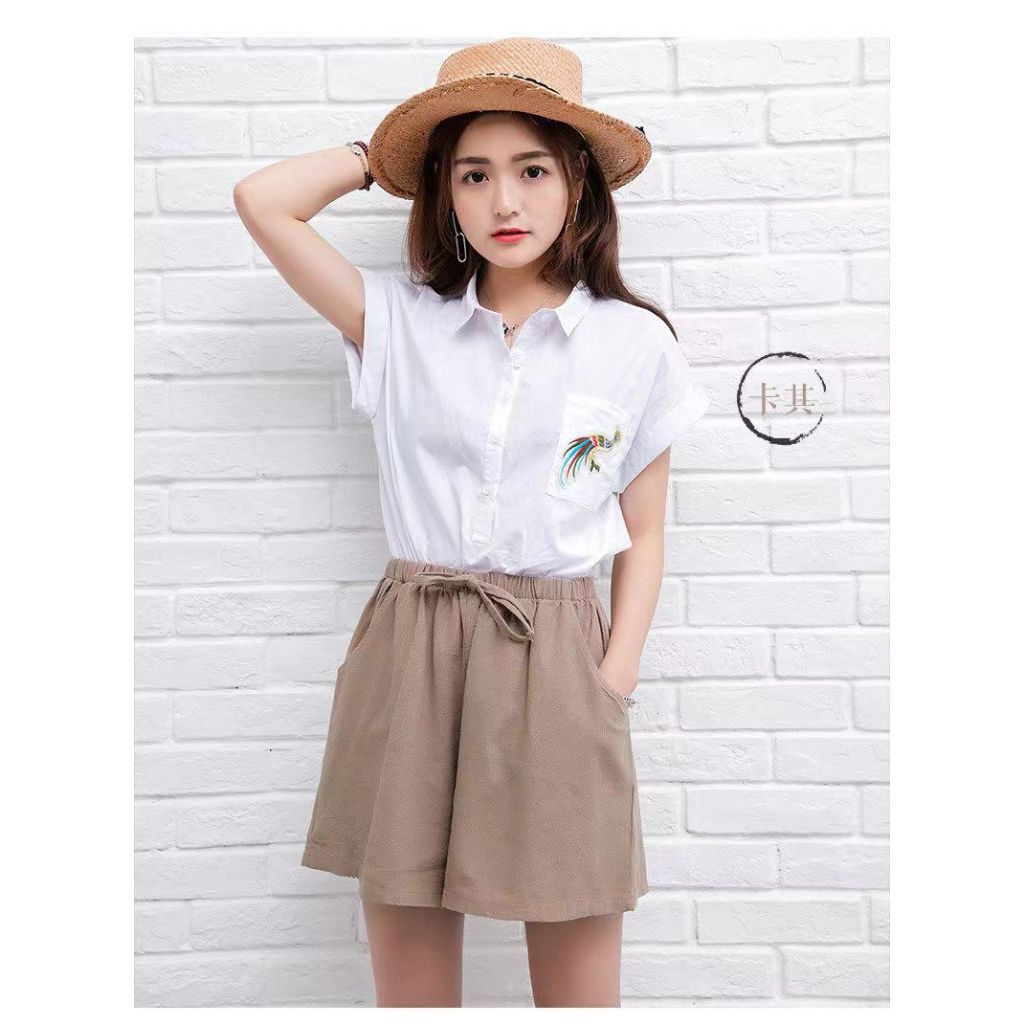 Shorts in linen material, very small & short in length abt 40cm only, more suitable for small build teenage girl bought with shop voucher & coin for a dollar plus