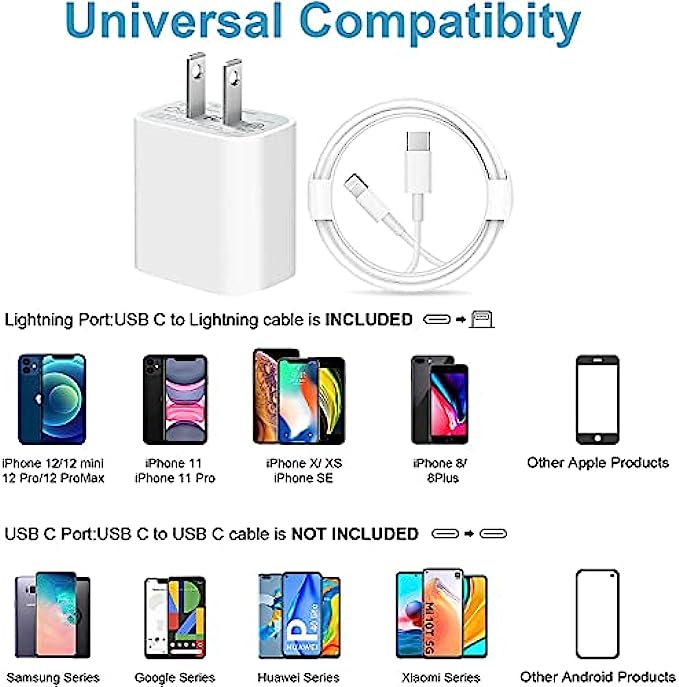 • 【Applicable Apple Equipment】 Use the official iPhone lightning cable with Romitaz 20W USB C wall charger to access fast-charging for iPhone13/ 13 Pro/ 13 Pro Max/ 13 mini, iPhone 12/ 12 Mini/ 12 Pro/ 12 Pro Max/ SE 2020/ 11/ 11 Pro/ 11 Pro Max/ XS/ XS Max/ XR/ X, 8/ 8 Plus, iPad, iPad Pro, iPad mini, iPad Air. This Romitaz Power Delivery 3.0 FAST charger also charge for iPhone 7 6 Plus, iPhone 5 5c 5s SE Airpod in a original charging speed.