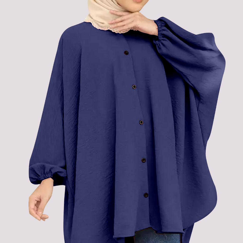 Received the delivery of Korean Style Women Long Friendly Sleeve Blouse Italian Crepe Viral Shirt Baggy Top Blouse Viral / Free Size promptly. Material is cooling and quality is good. Really comfortable to wear and suitable for hijabis. I will definitely buy other colors soon. Thank you seller.