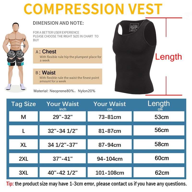 Product arrived all OK. Chose XL based on the measurement instructions and the fit was good. Just FYI, I'm usually an M size. My picture shows the XL singlet on an M uniqlo t-shirt. Don't expect to put it on easily like a t-shirt cos it's supposed to be tight to make you look better. And it won't take inches off your waistline but it should make your silhouette look better.