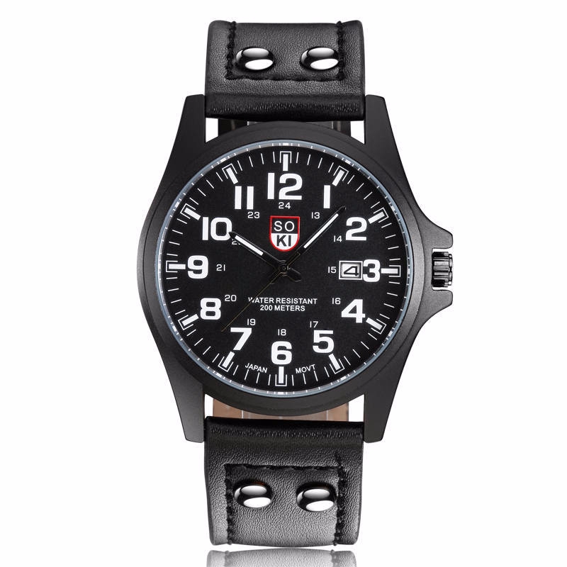Mens Military Calendar Leather Analog Quartz Watches