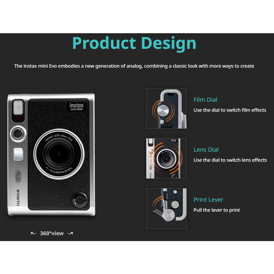 Value For Money:good Performance:excellent Best Feature(s):all Fast delivery and good service by seller. Camera works well as expected. Ordered a brown instax evo but since it's OOS, seller had the honesty to come forward about it. Chose to opt for the black one still and received my balance refund. Thank u!