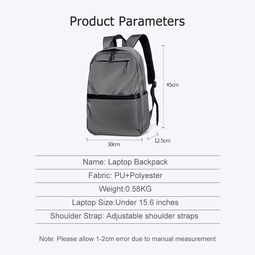 The quality of the backpack is very good. The fabric feels very comfortable. The capacity is enough for my use. I like it very much. The gray color looks very high-end.