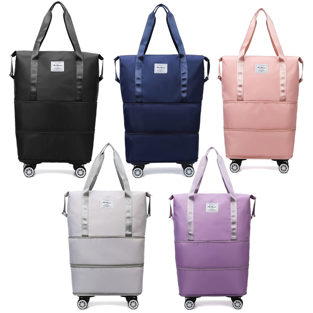 Material Quality:good quality Colour:as advertised. I was quite surprised at how big this bag was when it expanded. Light weight and the wheels are easy to fix. This will be very handy for shopping and short trip. I just hope it can last and hold heavy weight. Will recommend.