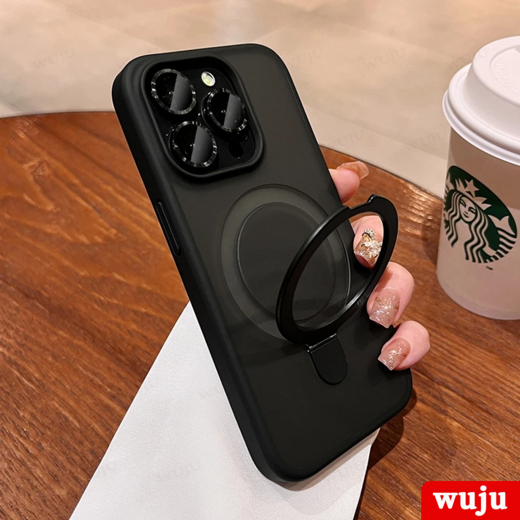 WUJU Luxury Matte Magnetic Holder Wireless Charging Phone Case Compatible For iPhone 11 12 13 14 15 Pro Max Plus