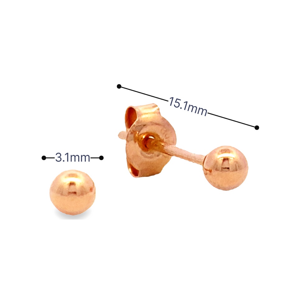 Top Cash Jewellery 18K Rose Gold Ball Stud Earrings